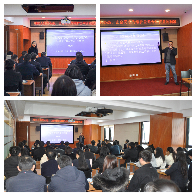 為增強全體員工的法律基礎(chǔ)知識,提升法律素養(yǎng),規(guī)避合同全生命周期管理過程中的法律風(fēng)險,保證公司業(yè)務(wù)經(jīng)營的可持續(xù)發(fā)展,3月3日上午,公司特邀李慶華律師開展了以“用主人翁的心態(tài),讓合同成為維護公司合法權(quán)益的利器”為主題的法律基礎(chǔ)知識專題培訓(xùn)。
