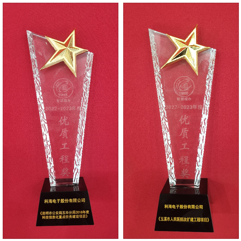 7月19日,云南省智慧城市集成服務商協會會員大會在昆明滇池國際會展中心召開,公司承建的“昆明市公安局某分局科技信息化項目”、“玉溪市人民醫院改擴建工程項目(含門診醫技綜合用房和全科醫生臨床培養基地)建筑智能化工程”喜獲智慧城市優質工程獎,科海電子又添新榮譽!
