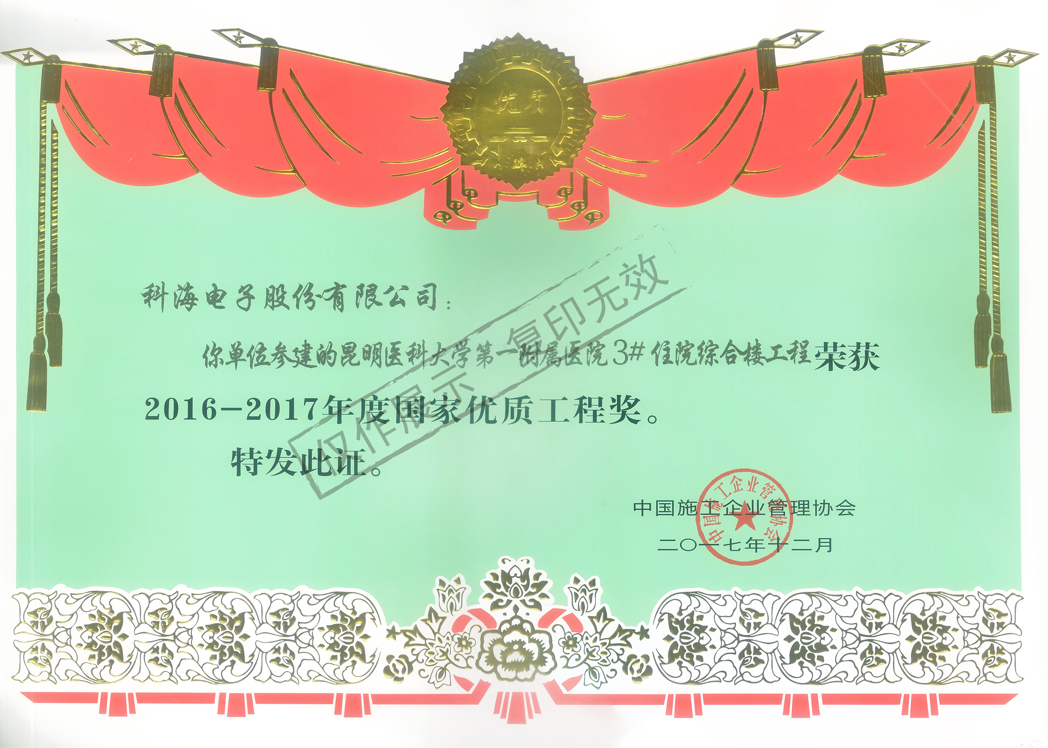 昆明醫科大學第一附屬醫院優質工程獎